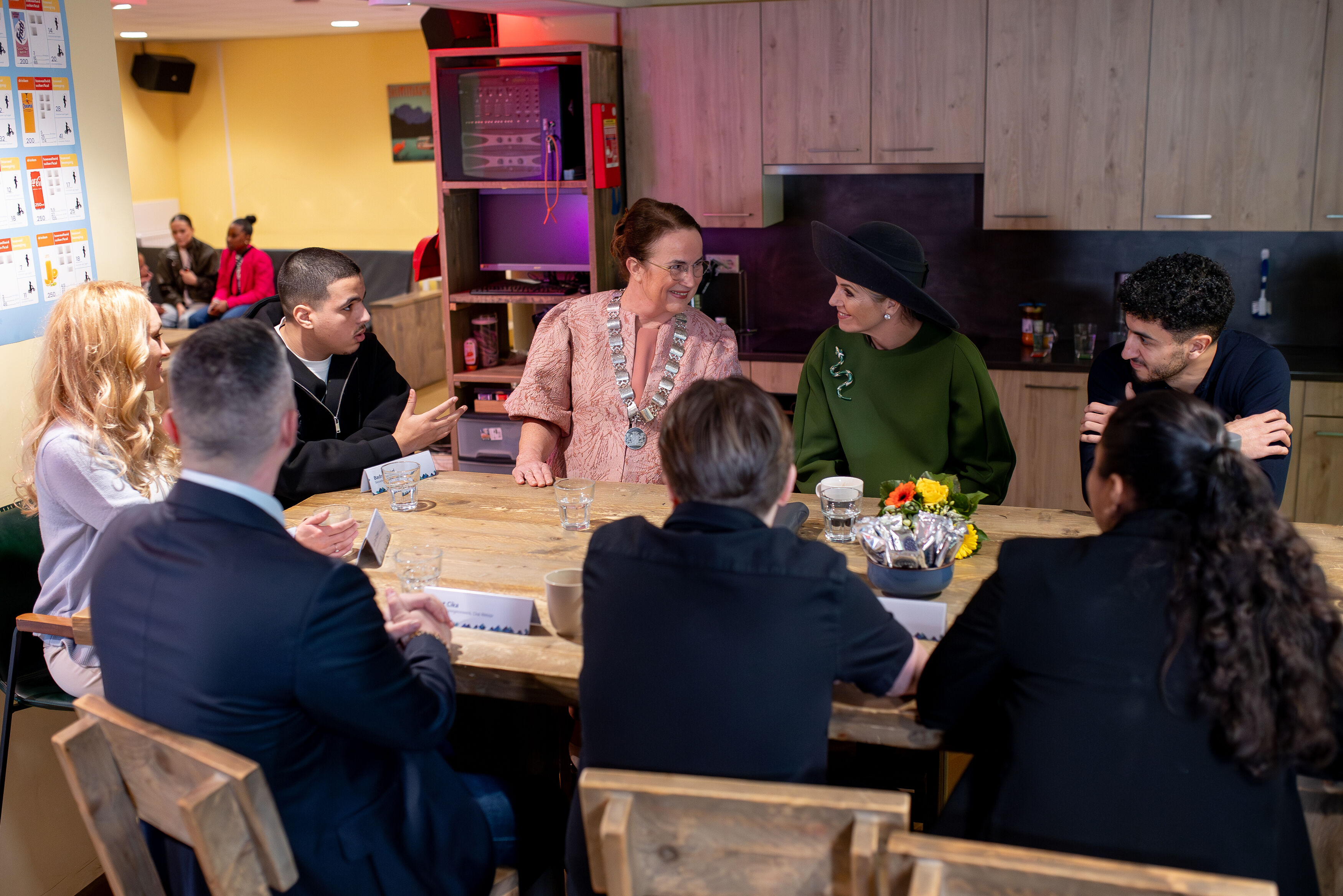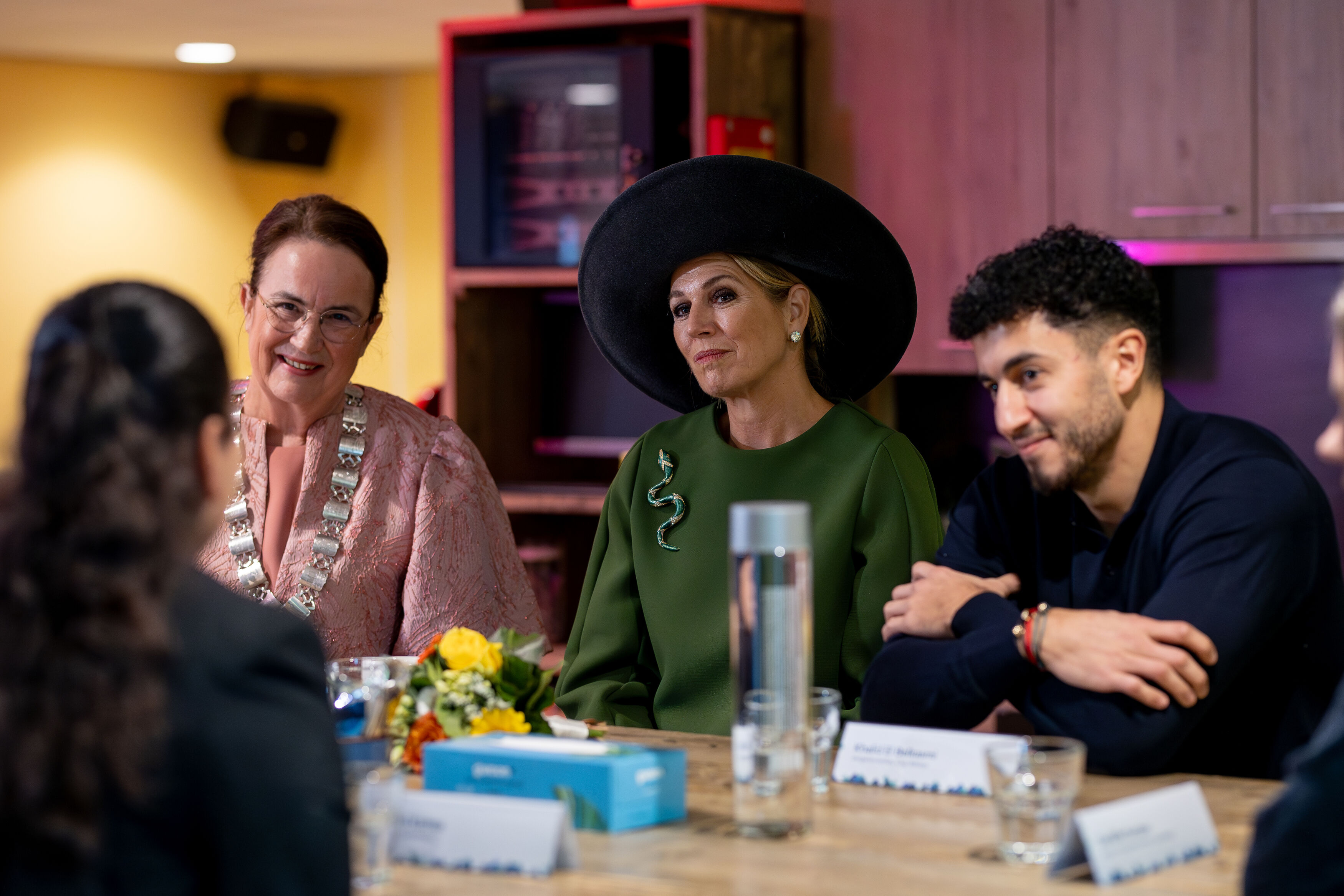 Bij Columbuzz sprak de koningin met jongeren en jongerenwerkers over hun ervaringen, talenten en de betekenis van het jongerencentrum als veilige plek om elkaar te ontmoeten en jezelf te ontwikkelen. De persoonlijke verhalen lieten zien hoe belangrijk het is dat jongeren zich gezien en gehoord voelen